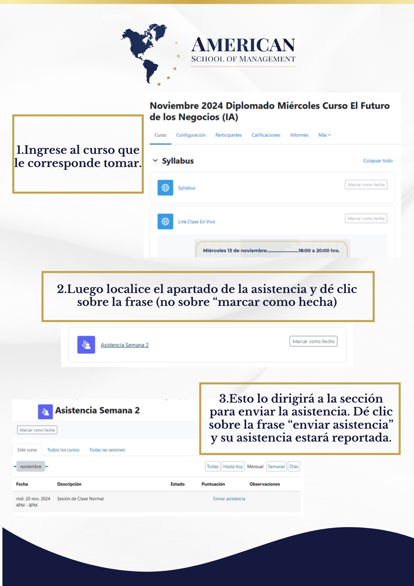 - Busca un enlace o sección que diga "Asistencia" en el curso.